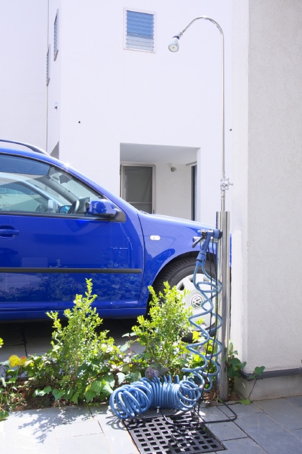 会社帰り、共有のアプローチを経て我が家のドアを開けるまで、隣家の室内はみえないのだけれど、ルーバーのスリットから漏れる光りや、夕餉の匂い、親密な気配が漂います。 |